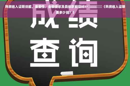 摘要:购房收入证明在购房过程中至关重要,其金额要求因地区、房价、贷款额度等因素而异。本文将详细解析收入证明的重要性,并探讨所需的金额范围。具体金额需结合个人收入、家庭财务状况及购房需求综合计算。本文旨在帮助购房者了解购房收入证明的重要性及合理金额,为顺利购房提供参考。
