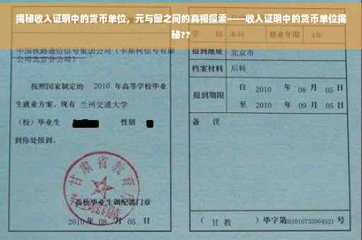 摘要:本文将揭示收入证明中的货币单位问题,探讨元与圆之间的区别和用法。文章旨在为读者提供一个清晰的了解,避免混淆和误解。收入证明不是圆章,而是涉及到货币单位的正确使用。通过阅读本文,读者将了解如何正确使用货币单位,避免在收入证明等场合出现错误。