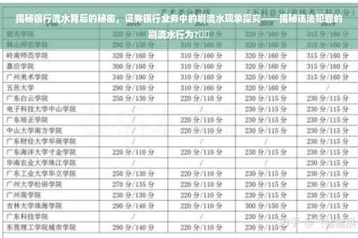 刷流水作为证券银行业务中的一种现象,既有其存在的合理性,也伴随着诸多风险和挑战,我们需要理性看待刷流水现象,加强监管力度、完善法律法规、提高公众意识、共同维护金融市场的稳定和健康发展,希望本文能够帮助您深入了解证券银行业务中的刷流水现象及其背后的秘密。
