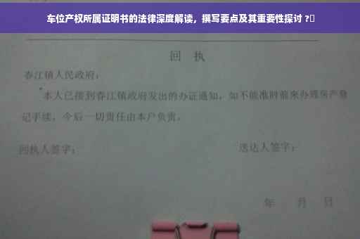 在当今社会,随着经济的快速发展和城市化进程的加快,私家车的数量也在不断增加,车位产权所属证明书作为车主权益的重要保障,其重要性日益凸显,本文将深度解析车位产权所属证明书的相关内容,帮助读者了解其作用、意义以及背后的法律问题。