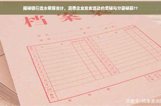 在经济高速发展的今天,企业的资金流动状况对其运营效率和经济效益有着直接的影响,银行流水明细作为记录企业资金流动的重要载体,其重要性不言而喻,本文将深入探讨银行流水明细会计的基本概念、核心作用以及在企业财务管理中的实际应用,并强调如何有效利用银行流水明细会计,以帮助企业更好地把握资金状况,提升财务管理水平。