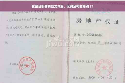 摘要:本文提供了贫困证明书的范文示例,以帮助需要申请贫困证明的人们了解如何正确填写。贫困证明书是一种证明个人或家庭贫困状况的文件,通常需要填写个人信息、家庭状况、经济状况等内容。通过参考提供的范文,人们可以更好地了解贫困证明书的格式和要求,从而顺利申请相关资助或优惠政策。