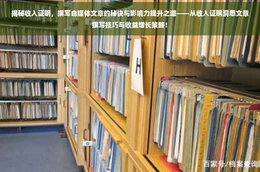 在求职、申请贷款等场合,收入证明是评估个人经济实力和信用状况的重要依据,撰写一篇关于收入证明的文章,对于自媒体作者而言,具有极高的实用价值,通过分享收入证明的相关知识,不仅能够为读者解决实际问题,还能提升自媒体账号的权威性和影响力。