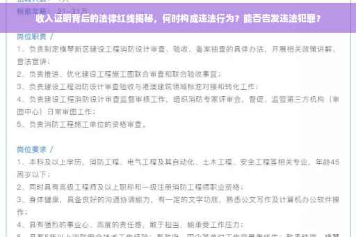 摘要:本文将探讨收入证明背后的法律红线,分析何时构成违法行为,并探讨收入证明能否作为告发违法犯罪的依据。文章将简要介绍收入证明的重要性,法律对其的规范,以及在实际应用中如何避免触碰法律红线。也将解答收入证明能否作为告发违法犯罪的依据这一问题。