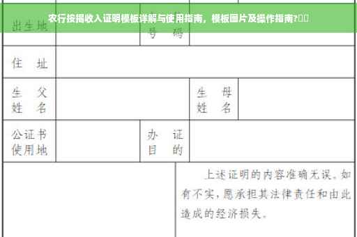 摘要:本文介绍了农行按揭收入证明模板的详细解析及使用指南。通过该模板,申请人可以方便地证明自己的收入状况,以便申请房贷等金融服务。文章附带了模板图片,方便读者查找和使用。本文旨在帮助读者了解如何正确填写和使用收入证明模板,以顺利获得银行按揭贷款。