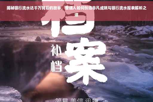 摘要:,,普通人通过不懈努力,实现银行流水达1500万的不平凡之路被揭秘。银行流水体现在报表上,背后是无数个日夜的努力与决策的智慧。从节省开支到理财投资,从职场晋升到创业尝试,每一步都凝聚着汗水与智慧。这不仅是对个人能力的肯定,更是对勤奋与坚持的最好回报。普通人的成功故事激励着更多人勇往直前,追求梦想。