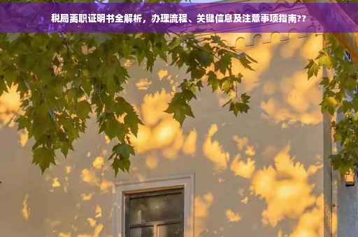 摘要:本文介绍了税局离职证明书的详细办理流程、关键信息及注意事项。包括了解离职证明书的含义和用途,准备相关材料,前往税局办理,填写申请表格等流程。提醒注意事项,如确保材料齐全、准确填写信息、注意办理时间等。本文旨在帮助读者顺利开具税局离职证明书。