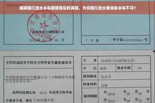 摘要:银行流水并非只有半年期限才能查询,但某些金融机构或贷款机构可能会要求申请者提供近半年的银行流水记录以评估其信用状况。揭示银行流水背后真相,包括其重要性以及可能存在的误解,提醒公众根据自身需求合理查询和使用银行流水记录。
