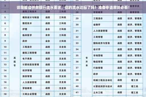 摘要:申请房贷时,银行对流水要求较高,以确保申请人具备偿还贷款的能力。流水要求包括存款余额、收入稳定性及连续性等方面。申请人需提前了解银行的具体要求,并准备好相应的流水证明,以确保顺利获得贷款。如果你的流水未达标,可能需要提前调整收入结构或提供其他证明文件来满足银行要求。