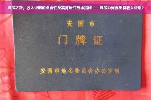在当下火热的房地产市场,购房已成为众多家庭的重要议题,面对心仪的房源,除了资金储备,购房者还需准备一系列证明材料以证明自身资质,收入证明尤为关键,购房为何需要出具收入证明?背后又隐藏着怎样的故事?这篇文章将为您揭开谜底。