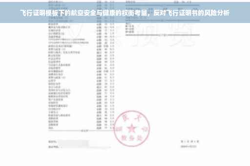 摘要:,,关于飞行证明书的使用,本文提出了权衡航空安全与健康因素的考量。鉴于飞行证明模板的重要性,本文不建议轻易颁发飞行证明书,需综合考虑航空安全与健康因素。在保障航空安全的前提下,应谨慎评估飞行对个体健康的影响,确保飞行人员的健康状况符合飞行标准。