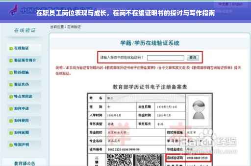 摘要:本文探讨了在职员工的岗位表现与成长问题,并重点讨论了关于在岗不在编证明书的撰写方法。文章指出,在职员工的岗位表现是衡量其工作能力的重要指标,而成长则包括技能提升和职业发展等方面。文章还介绍了在岗不在编证明书的重要性及其撰写要点,包括明确证明目的、准确描述员工职责和表现、提供具体证据等。文章旨在帮助企业和员工更好地理解和利用在岗不在编证明书,促进员工的职业发展和企业的稳定发展。