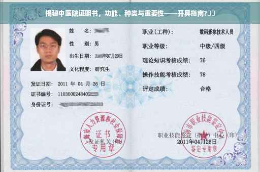 摘要:本文将为您揭秘中医院证明书的种类、功能及其重要性。了解中医院证明书的开具流程,包括其种类如诊断证明书、健康证明书等,以及它们在治疗过程中的关键作用。本文将指导您如何正确有效地开具中医院证明书,并强调其对于患者健康管理和医疗记录的重要性。阅读本文,您将更好地了解中医院证明书的重要性及其在实际应用中的价值。
