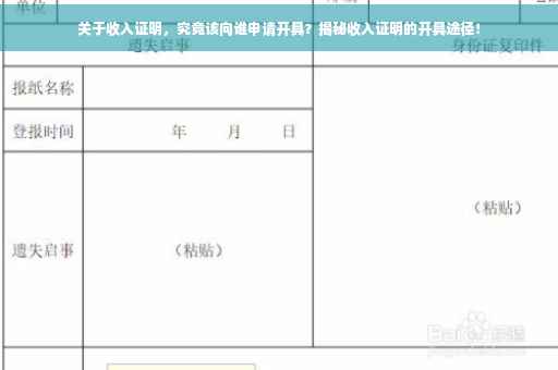 在当今社会,收入证明已成为许多场合不可或缺的一项证明材料,无论是办理贷款、申请信用卡,还是租房、入职等,它都扮演着重要的角色,但很多人对于“收入证明应该找谁开”这个问题存在疑惑,就让我们一起探讨一下,收入证明究竟应该由谁来开具。