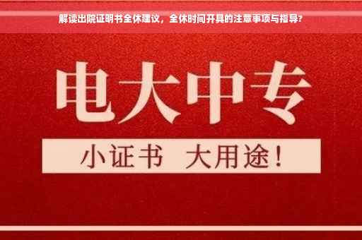 出院证明书中的全休建议部分通常会明确休息的起止时间、是否需要继续治疗以及注意事项等内容,患者在接到出院证明书后,应仔细阅读全休建议部分,确保理解并遵循医生的建议,如有疑问,应及时向医生咨询。