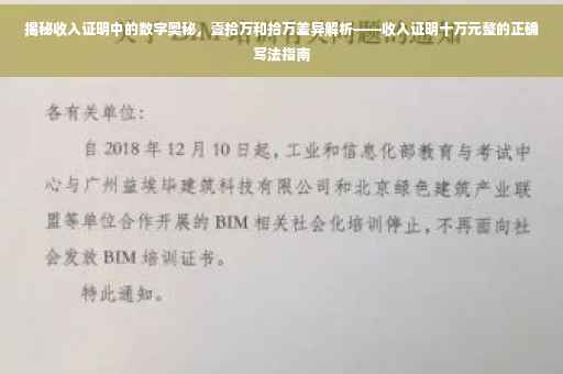摘要:本文将探讨收入证明中的数字奥秘,特别是关于“壹拾万”与“拾万”的差异。本文将介绍如何正确书写收入证明中的金额,例如十万元整应如何表达,以避免产生歧义。通过深入了解收入证明中的数字表达技巧,帮助读者更好地理解并正确填写收入证明。