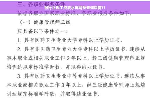 摘要:本文将详细介绍银行正规工资流水的概念及其查询方法。通过银行正规工资流水,可以了解个人或企业的工资收入情况,有助于信用评估、贷款申请等。查询银行正规工资流水,可通过网上银行、手机银行或前往银行柜台进行。查询时需提供有效身份证件及可能需要的银行卡号等信息。了解并正确查询银行正规工资流水,有助于个人财务管理和信用维护。
