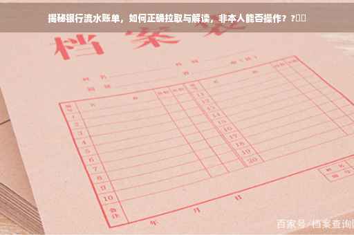 摘要:本文将指导读者如何正确拉取并解读银行流水账单,深入了解银行流水的重要性。揭秘拉取银行流水账单的过程中是否需要本人亲自到场。通过本文,您将了解如何有效利用银行流水账单,以便更好地管理个人财务。
