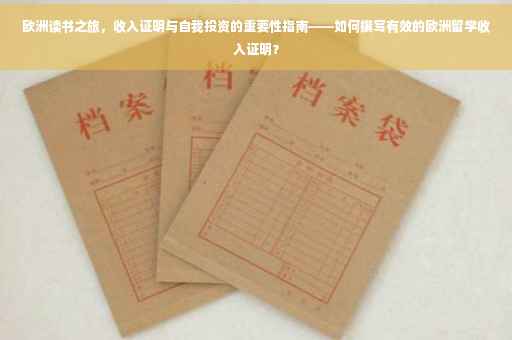 随着全球化的推进,越来越多的中国学生选择赴欧洲留学,追求更高的教育水平和更广阔的发展机会,在申请欧洲留学的过程中,许多学生可能会遇到需要提供收入证明的情况,本文将详细介绍在欧洲读书时如何准备收入证明,并探讨收入证明在留学过程中的重要性,文章还将分析留学的投资价值和如何提高留学生活的质量。