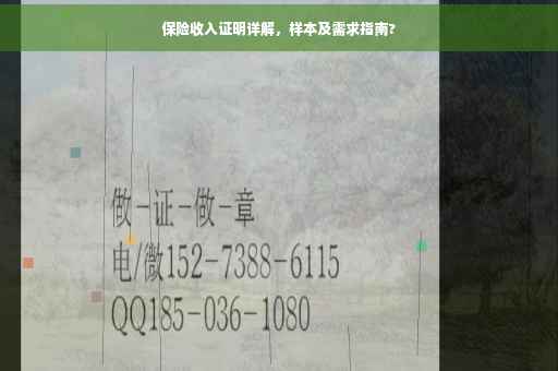 摘要:本文将详细介绍保险收入证明的需求,包括保险公司对个人收入证明的要求及其目的。提供一份保险要的收入证明样本,以帮助申请人了解如何准备并提交符合要求的收入证明文件。本文旨在帮助大众了解保险申请过程中的收入证明流程,以便顺利获得保险保障。