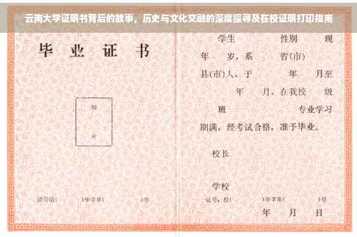 每一本云南大学证明书背后都有一段独特的故事,这些故事让我们更加深入地了解学校的历史与文化底蕴,感受到学生们坚韧不拔、勤奋学习的精神,希望通过这篇文章,能让您更加了解云南大学证明书背后的故事和价值,感受到历史与文化的深度交融。