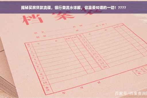 摘要:本文将为你详细介绍买房贷款的流程,包括银行如何查流水。银行查流水主要是为了评估申请人的还款能力,通常查看近半年的银行流水。本文还将解答关于买房贷款过程中你可能遇到的所有问题,助你顺利购房,避免不必要的麻烦。