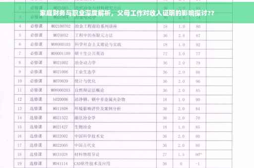 父母的工作与收入证明在家庭财务和个人成长中扮演着重要角色,了解父母的工作特点、收入水平及其对家庭财务的影响,有助于我们更好地认识家庭经济的实际情况,在职业选择过程中,我们不仅要考虑经济收入,还要关注事业发展、社会地位和人生价值实现等多方面因素,希望通过本文的探讨,能为大家提供一些有益的启示。