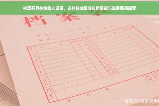 随着农村经济的发展,林业作为农村经济的重要组成部分,其地位日益凸显,为了更好地推动农村林业经济的发展,村里决定为林农开具林地收入证明,以证明其林地经营收入,保障林农的合法权益,本文将详细介绍村里开具林地收入证明的背景、目的、流程和意义。