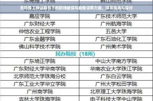 在现代社会,随着经济的发展和社会的进步,越来越多的人开始关注职场诚信问题,在这个竞争激烈的时代,如何证明自己是一个值得信赖的员工,成为了许多职场人士关注的焦点,无特殊工种证明书作为一种自我证明的方式,逐渐受到人们的重视,本文将探讨无特殊工种证明书的含义、作用,以及在职场诚信建设中的重要性。