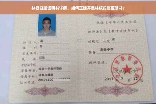 随着社会的不断发展,林业资源的归属问题日益受到关注,林权归属证明书作为证明林地权属的重要文件,对于维护森林资源、保障农民权益具有重要意义,本文将详细介绍林权归属证明书的含义、作用、办理流程及相关注意事项,帮助读者更好地了解和使用这一重要文件。