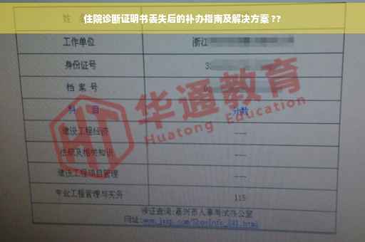 摘要:,,本文章介绍了住院诊断证明书的重要性及其丢失后的办理方法。住院诊断证明书是患者住院治疗的官方证明,若丢失,需及时办理。办理流程包括联系主治医生开具诊断证明书的复印件或补开证明,前往医院相关部门盖章,以及可能涉及的保险报销注意事项。文章提醒患者妥善保管住院诊断证明书,避免不必要的麻烦。
