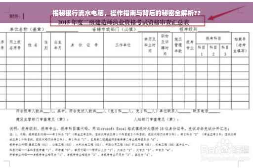 摘要:本文将揭示银行流水电脑背后的秘密,并为您提供操作指南。不当使用银行流水电脑可能涉及违法犯罪问题。请确保在合法范围内查询和使用。本文将介绍如何安全、合法地查看银行流水,以保护个人财产安全并避免不必要的法律风险。