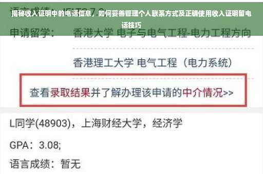 在当今社会,随着互联网的普及和数字化时代的来临,个人信息泄露的风险日益加剧,收入证明作为展示个人经济能力的重要文件,在求职、贷款等方面扮演着至关重要的角色,在提供收入证明时,如何妥善留存和使用自己的电话信息,避免个人信息泄露和不必要的麻烦,成为了许多人关注的焦点,本文将就此话题展开讨论,为您解析其中的利害关系,并分享一些实用建议。