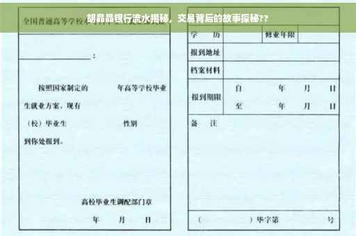 胡晶晶的银行流水单揭示了一系列交易背后的故事。每一笔交易都反映了她的生活轨迹和财务动态。这些交易记录不仅仅是简单的数字流水,更是她生活的一部分,包括收入、支出、转账等。通过这份银行流水单,我们可以窥探到她的日常生活、消费习惯以及经济状况。胡晶晶的银行流水单成为了一个引人入胜的故事线索。