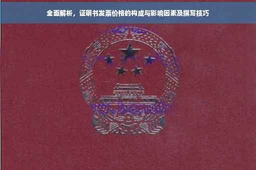 摘要:本文将全面解析证明书发票价格的构成与影响因素。文章将详细介绍证明书发票价格的构成要素,包括商品或服务成本、税费、利润等方面。还将探讨影响证明书发票价格的关键因素,如市场需求、竞争状况、质量差异等。通过本文的阐述,读者将了解如何合理制定证明书发票价格,以满足市场需求和保障企业利润。
