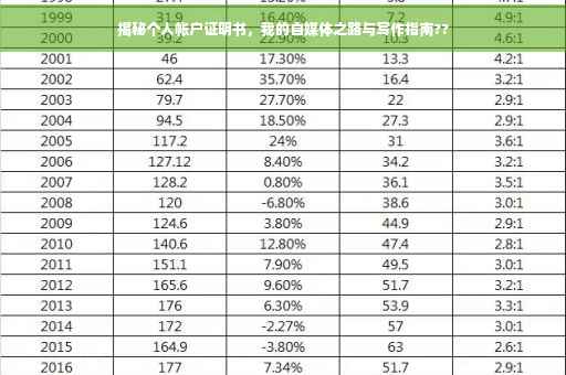 摘要:本文将介绍如何撰写个人帐户证明书,并分享我的自媒体之路。通过个人帐户证明书,展示个人自媒体账号的基本信息、发展历程、影响力及收益情况,揭示自媒体运营的经验和心得。文章旨在帮助读者了解如何开启自己的自媒体之旅,并提供实用的建议和启示。