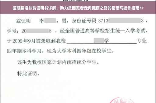 <p>在当前社会背景下,贫困地区的医疗资源匮乏,因病致贫、因病返贫的现象屡见不鲜,为了贯彻国家的精准扶贫政策,我所在医院积极响应号召,推出了一系列精准扶贫措施,其中医院精准扶贫证明书是其中的重要一环,这份证明书为贫困患者提供了有效的医疗救助,本文将详细介绍医院精准扶贫证明书的作用、申请流程、审核标准以及实际案例,展现我院在精准扶贫事业上的努力与成果。</p>