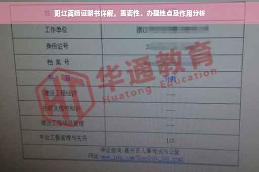 清晰,结构完整,但在介绍阳江离婚证明书的作用时,可以增加一些具体的实例来增强读者的理解,在证明婚姻状况、房产过户等部分,可以进一步描述这些场景下的实际操作和可能遇到的问题,以及离婚证明书在其中起到的具体作用,结尾部分可以进一步强调离婚证明书的重要性,提醒读者在涉及离婚相关事务时务必妥善保管和使用离婚证明书。