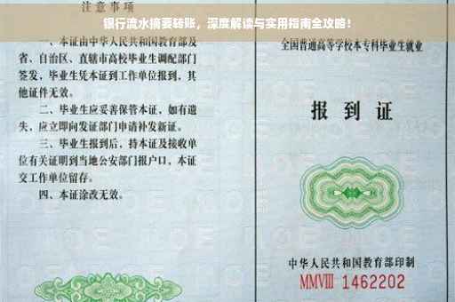 摘要:本文将详细介绍银行流水摘要转账的相关知识,包括如何正确书写银行流水摘要转账,为读者提供实用指南。通过深度解读银行流水摘要转账的要点和注意事项,帮助读者更好地管理个人财务和资金流转。内容涵盖银行流水摘要转账的基本概念和操作技巧,旨在帮助读者提高财务管理能力。