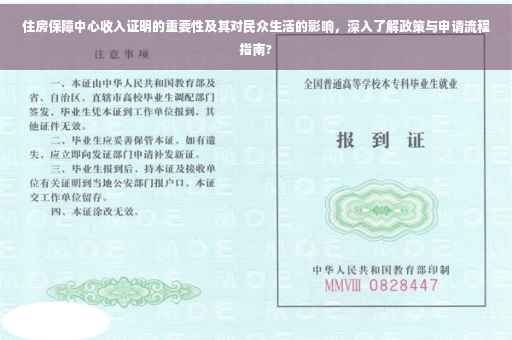 摘要:住房保障中心收入证明对于了解住房保障政策的重要性和影响至关重要。该证明涉及民众生活,能够反映个人或家庭的住房支付能力,进而影响到住房保障政策的申请和享受。开具收入证明需要遵循一定程序,提供相关证件和资料,确保信息的真实性和准确性。深入了解住房保障政策,有助于民众更好地利用政策资源,改善居住条件。