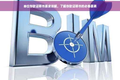 摘要:本文将详细介绍单位存款证明书的要求。内容涵盖单位存款证明书的定义、用途、申请流程、所需材料、办理时限以及注意事项等方面。旨在帮助读者了解单位存款证明书的具体要求和办理过程,以便顺利办理相关金融业务。文章简洁明了,易于理解,适合广大读者阅读。
