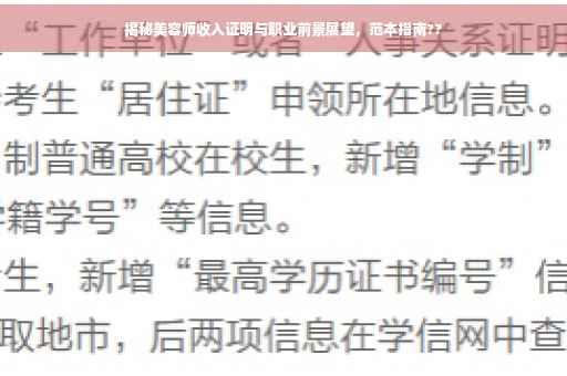 在当今社会,美容行业日益繁荣,越来越多的人开始注重个人形象与外在美,作为美容师,他们承担着为顾客提供专业美容服务的重任,本文将深入探讨美容师的收入证明问题,并尝试揭开这一职业的神秘面纱,带领读者了解美容师的职业前景与发展趋势。