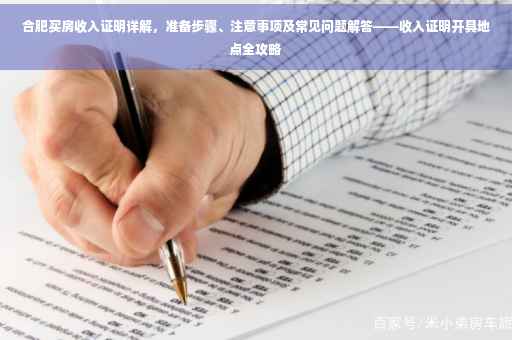 摘要:本文将全面解析合肥买房收入证明的准备过程,包括如何准备收入证明、注意事项以及常见问题的解答。文章将重点介绍收入证明的重要性及其在购房过程中的作用。还将探讨收入证明的开具地点和所需材料,帮助购房者顺利办理购房手续。