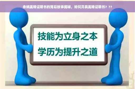 关于余姚离婚证明书的话题引起了广泛关注,随着社会的快速发展,离婚现象在我们的生活中愈发普遍,而离婚证明书作为这一过程的官方证明,也逐渐引起了人们的关注,我将带大家深入了解余姚离婚证明书的背后故事,探讨其背后的社会现象和法律问题。