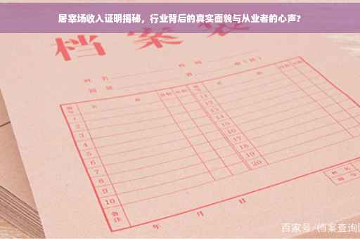 随着经济的发展和社会的进步,屠宰行业作为畜牧业的一个重要组成部分,一直在默默地为社会提供服务,屠宰场的从业人员们每天都在辛勤工作,为人们的日常生活提供必要的肉类食品,他们的收入状况如何?工作环境如何?本文将为您揭示屠宰场收入证明背后的真实面貌和从业人员的心声。