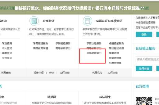 摘要:本文将揭示银行流水的分级标准,帮助你更好地解读自己的财务状况。通过了解银行流水的分级标准,你可以更清晰地掌握自己的资金流动情况,从而更好地规划个人财务。本文内容简洁明了,旨在帮助你快速了解银行流水的秘密。
