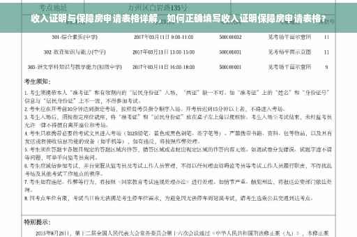 随着城市化进程的推进,住房问题已成为市民关注的焦点,为解决中低收入家庭的住房困难,政府实施了保障房政策,在申请保障房时,收入证明是审核过程中的重要环节,本文将围绕收入证明与保障房申请表格进行详细介绍,帮助申请人了解如何正确填写申请表格,以便顺利申请保障房。