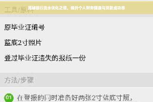 摘要:银行流水作为评估个人财务状况的重要依据,对于贷款申请和财务规划至关重要。良好的银行流水记录可以提升个人信用评级和贷款成功率。本文将介绍如何优化银行流水,包括合理控制支出、增加收入来源、定期储蓄和理财规划等方面。通过科学的财务管理,实现个人财务健康,为贷款申请铺平道路。