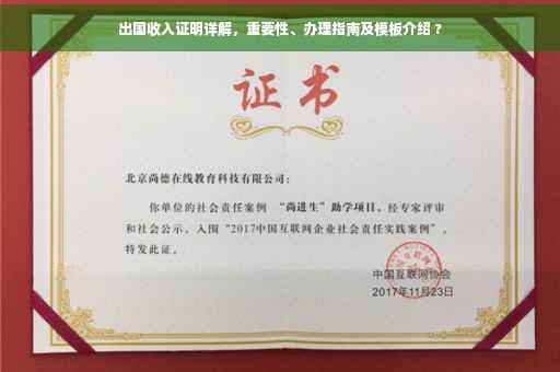 随着全球化的不断发展,越来越多的人选择走出国门,探索更广阔的世界,在申请签证、办理相关手续时,许多国家和机构都要求提供收入证明,以评估申请人的经济状况和偿还能力,本文将详细介绍出国时收入证明的重要性及办理指南,帮助大家顺利出国。