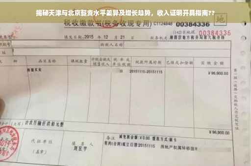 摘要:本文将探讨天津与北京的收入证明问题,揭示两地的薪资水平和增长趋势。文章将介绍如何获取天津的收入证明,并比较两地薪资差异,分析增长趋势。通过阅读本文,读者可以更好地了解天津和北京的收入状况,为自己的职业规划和发展提供参考。字数在100-200字之间。